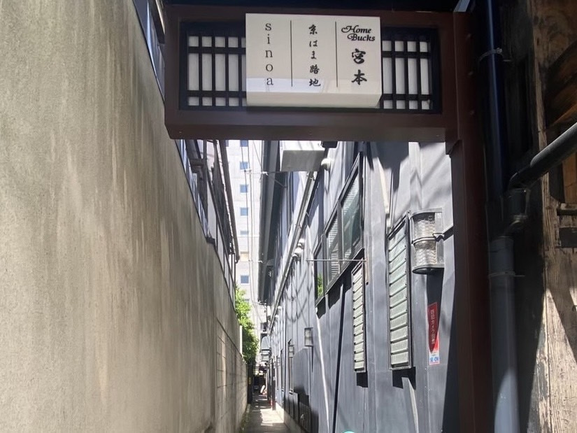 阪急烏丸駅から地図を頼りにして歩いていると、注意していないと見落としてしまいそうなところに看板を発見……!