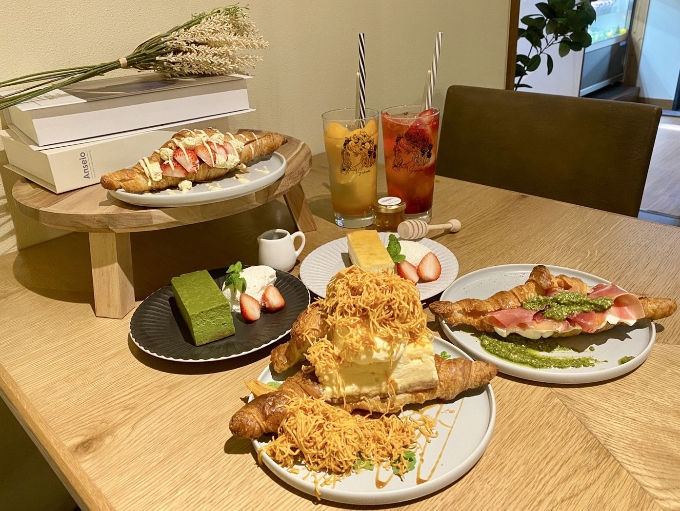 店内はモダンな雰囲気で、テーブルごとにドライフラワーや本などの小物が置いてあるので、思わず写真を撮りたくなるはずです!