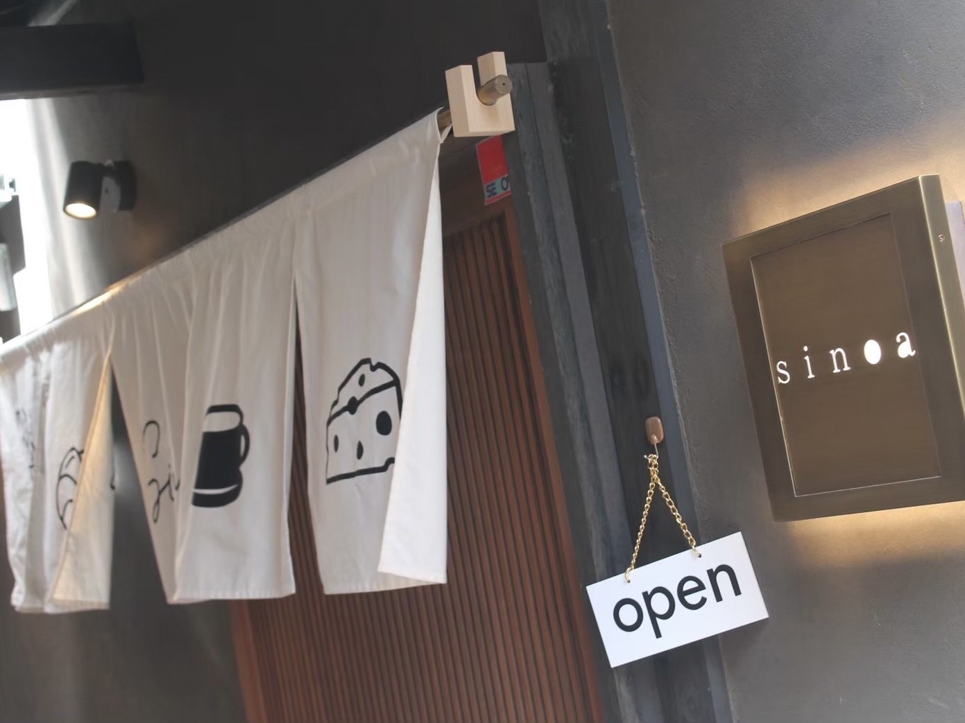 奥まで進んでみると、おしゃれな暖簾のかかったsinoaの入口に辿り着きました!