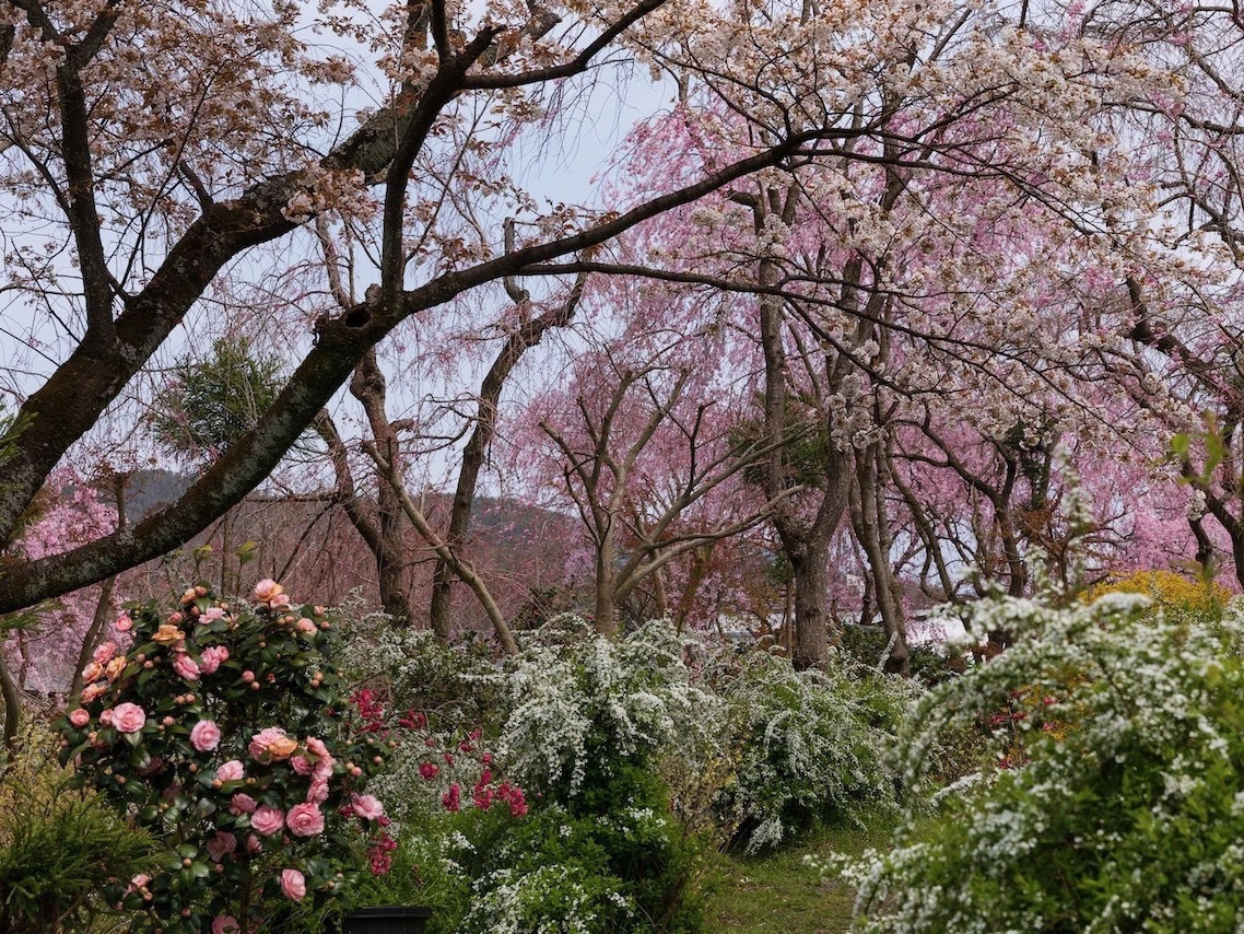 京都市内の桜が満開の頃には、早咲きのしだれ桜が満開となり、遅咲きで有名な御室桜が終わった頃でも、八重紅しだれ桜や黄桜、緑桜、牡丹桜、普賢桜、菊桜など、多くの桜を楽しむことができます。