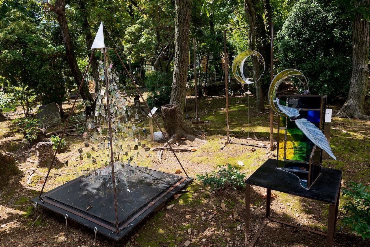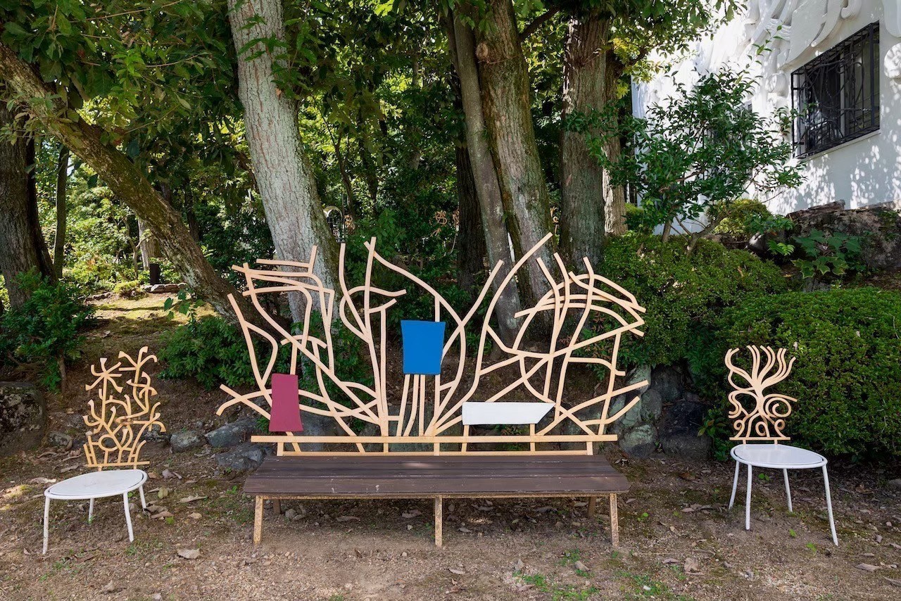緑に囲まれた中には、堂本印象がデザインした椅子がぽつん、ぽつんと点在していて、そこに座ると、まるで作品の一部になったかのような感覚に!