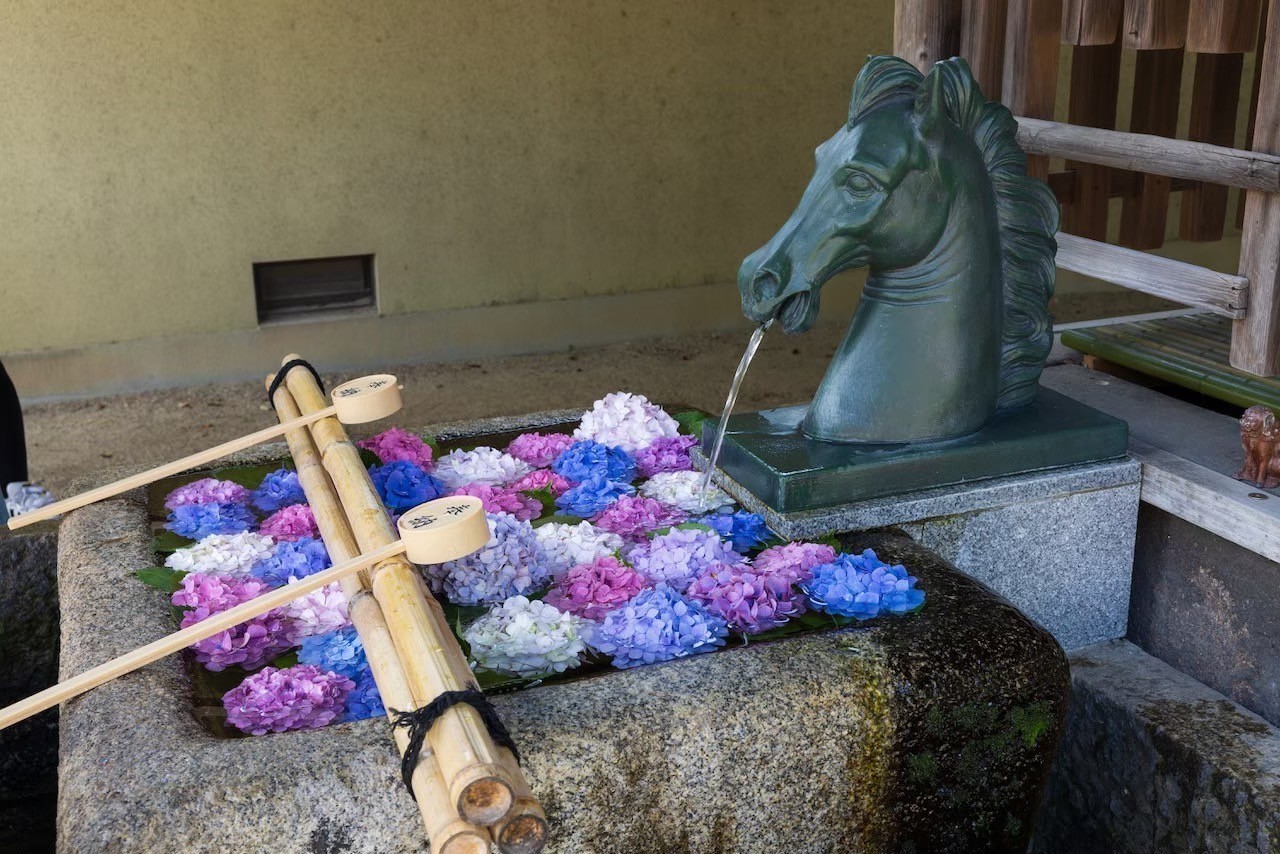 花の寺と勝運の神社で出会う、雨の季節の彩り!