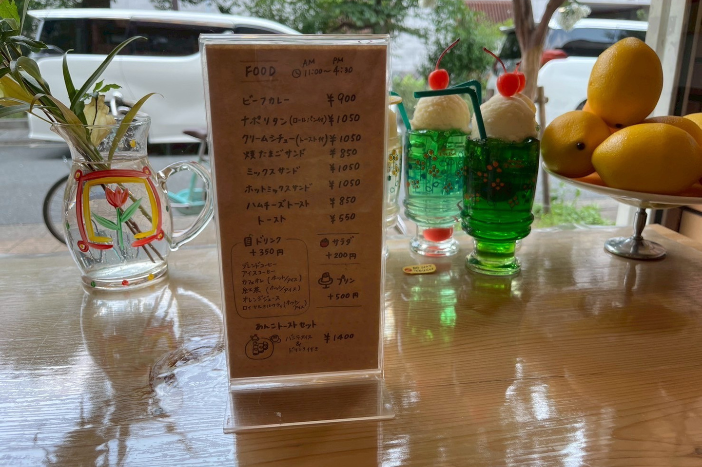 ドリンクには、コーヒーや紅茶のほか、ミックスジュースやクリームソーダなど、喫茶店らしいメニューがそろっています。