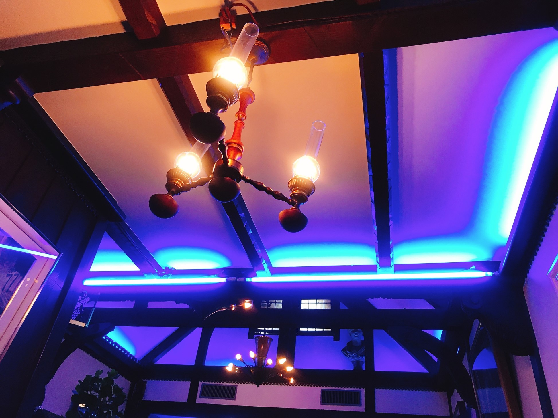そしてよく見ると、店内が青い……!?