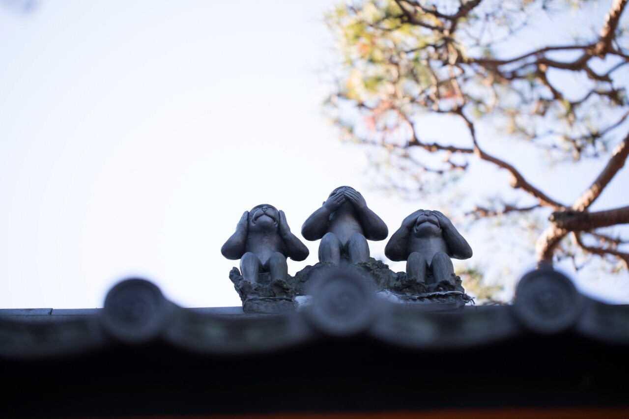 琴子さんは屋根の上にある三猿を見つけましたが、他の場所にも猿が隠れていますよ。