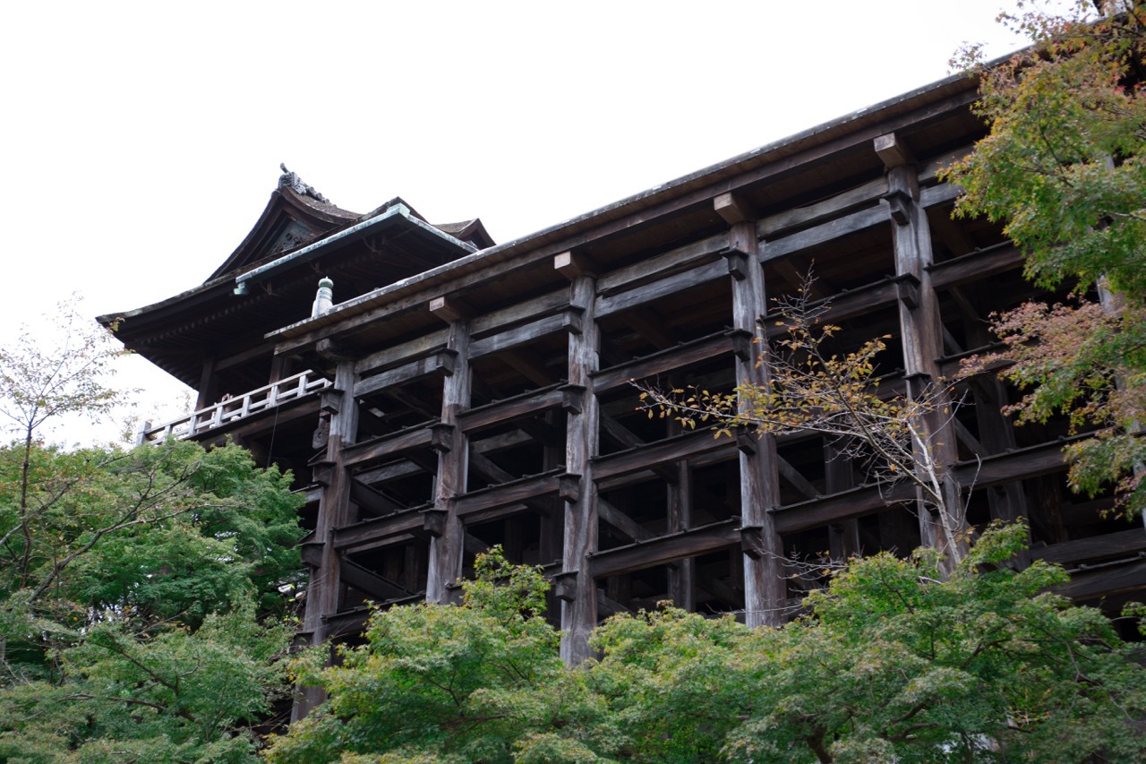 清水寺の本堂は崖の上に建つ勇壮な舞台造。