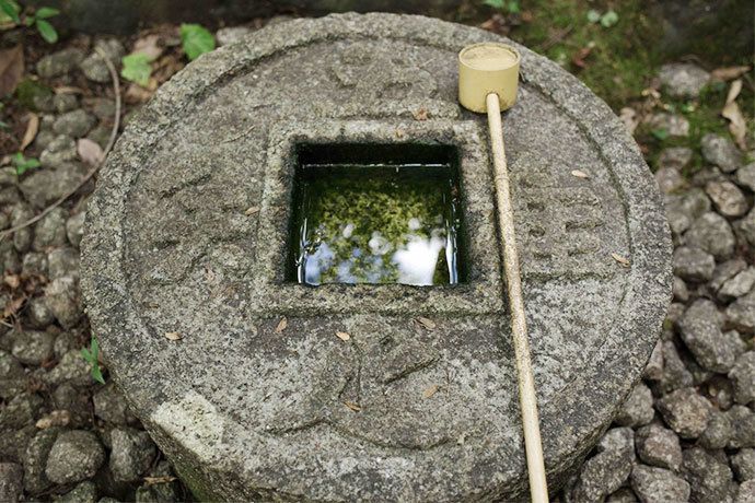 つくばいは、茶室に入る前に手を清める手水鉢。