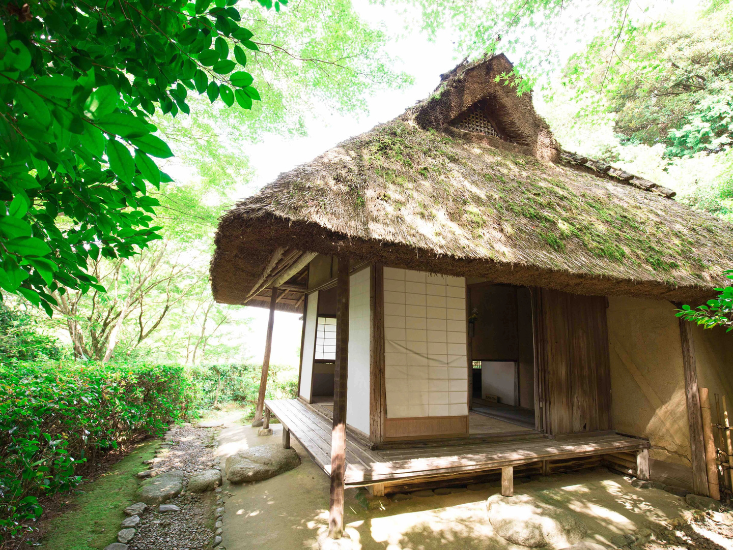 本堂から出て丘に続く道を上っていくと、茅葺き屋根の草庵が現れます。