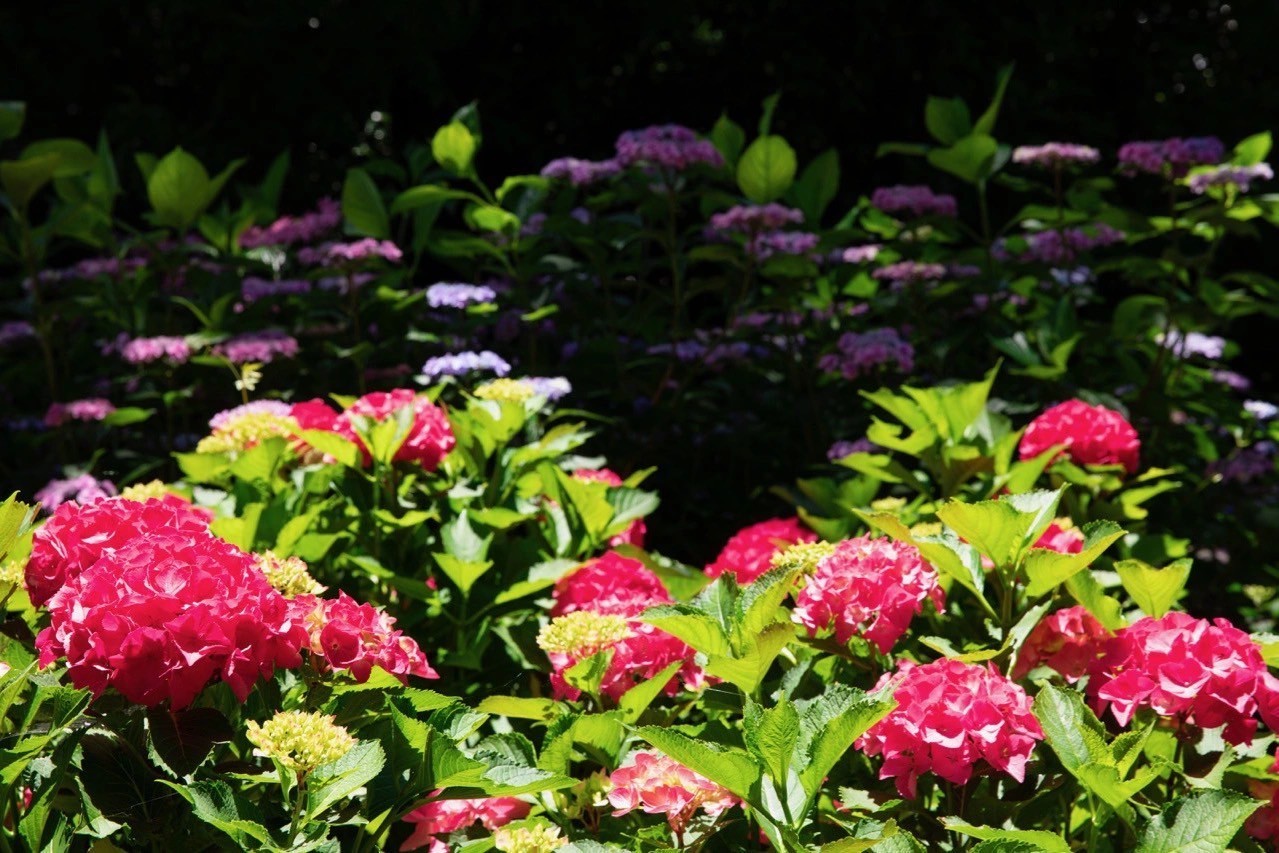 境内にある「あじさい園」には、西洋あじさいや額あじさい、柏葉あじさいなど、約50種・1万株ものあじさいが咲き誇ります。