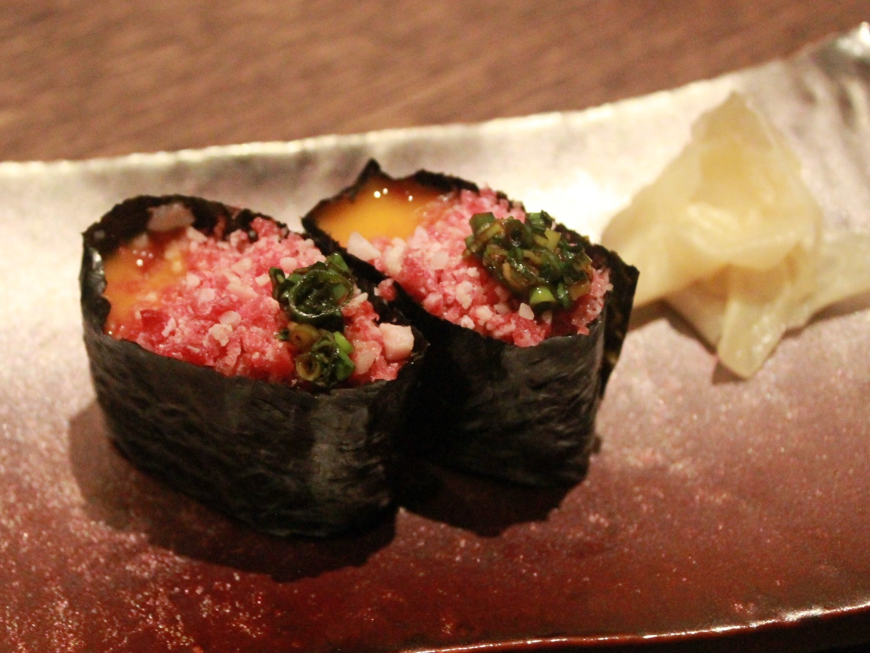 追加で、こちらもお店の方に勧めていただいた「牛とろ軍艦」を!